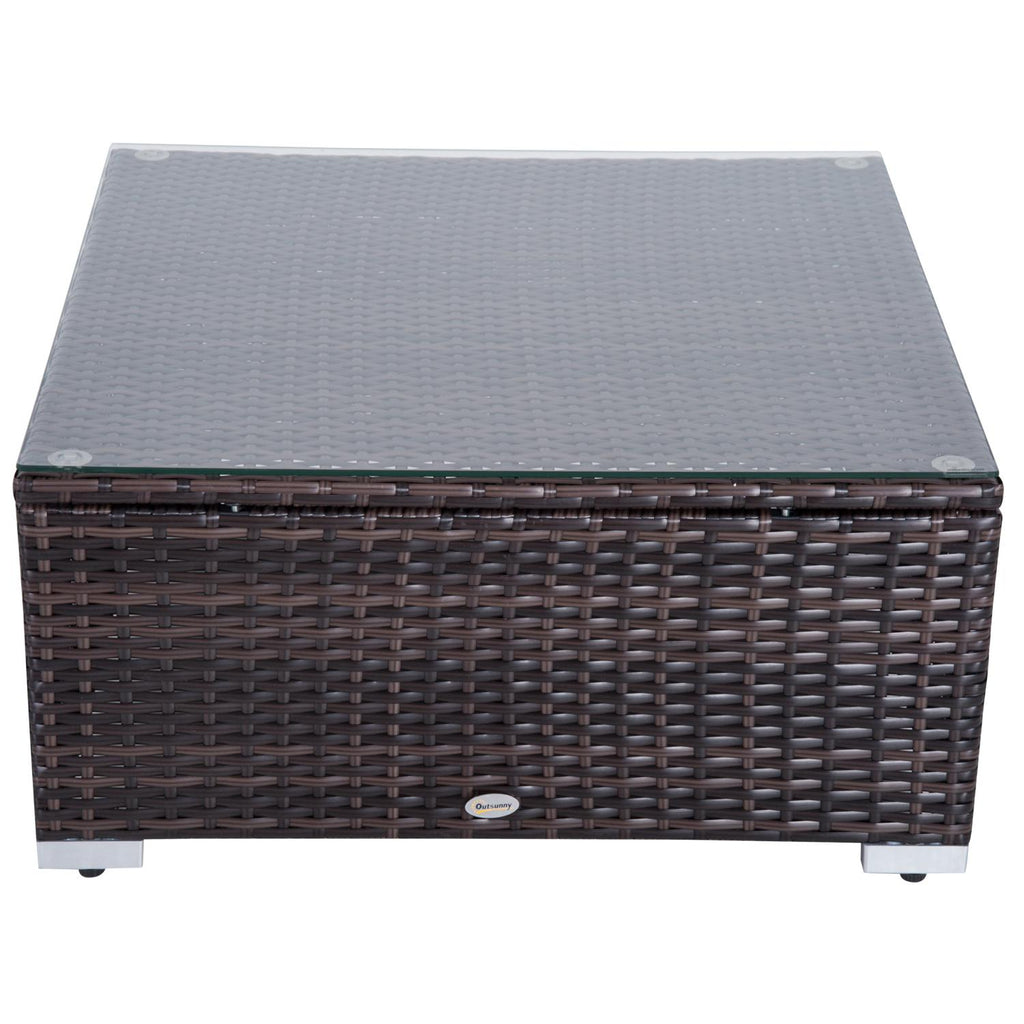- L'ensemble comprend 4 fauteuils, 1 pouf, 1 table basse avec plateau en verre trempé de 5 mm et 2 coussins.