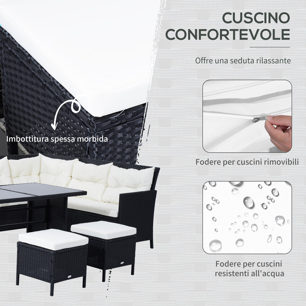Salon de jardin en rotin synthétique Canapé 6 pièces avec coussins et table basse noire