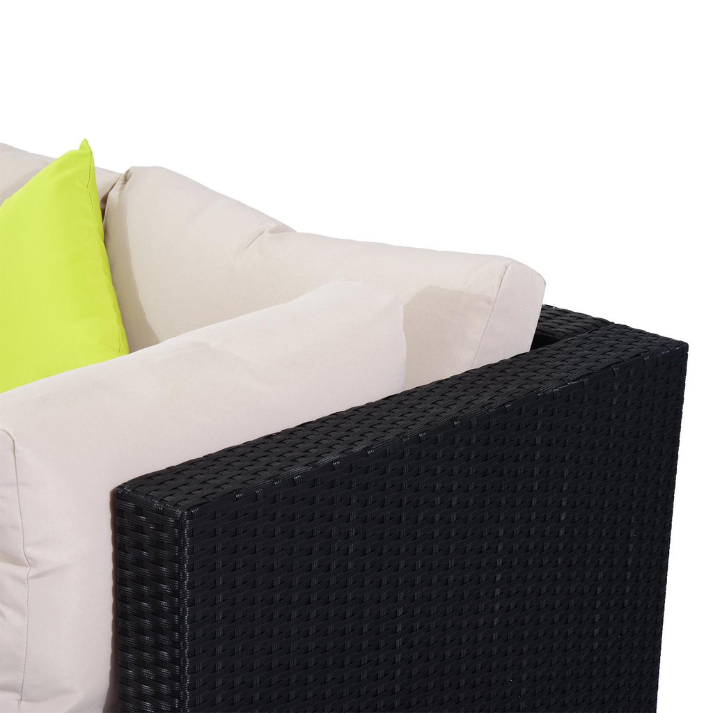 Salon de jardin en rotin synthétique 7 pièces canapé et table basse avec coussins noir