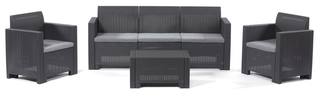 Salon de jardin en résine canapé 2 fauteuils et table basse Bauer Nebraska 3 anthracite