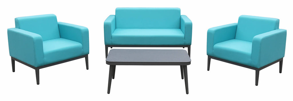 Salon de jardin en tissu imperméable Bauer Vienna bleu clair canapé 2 fauteuils et table basse
