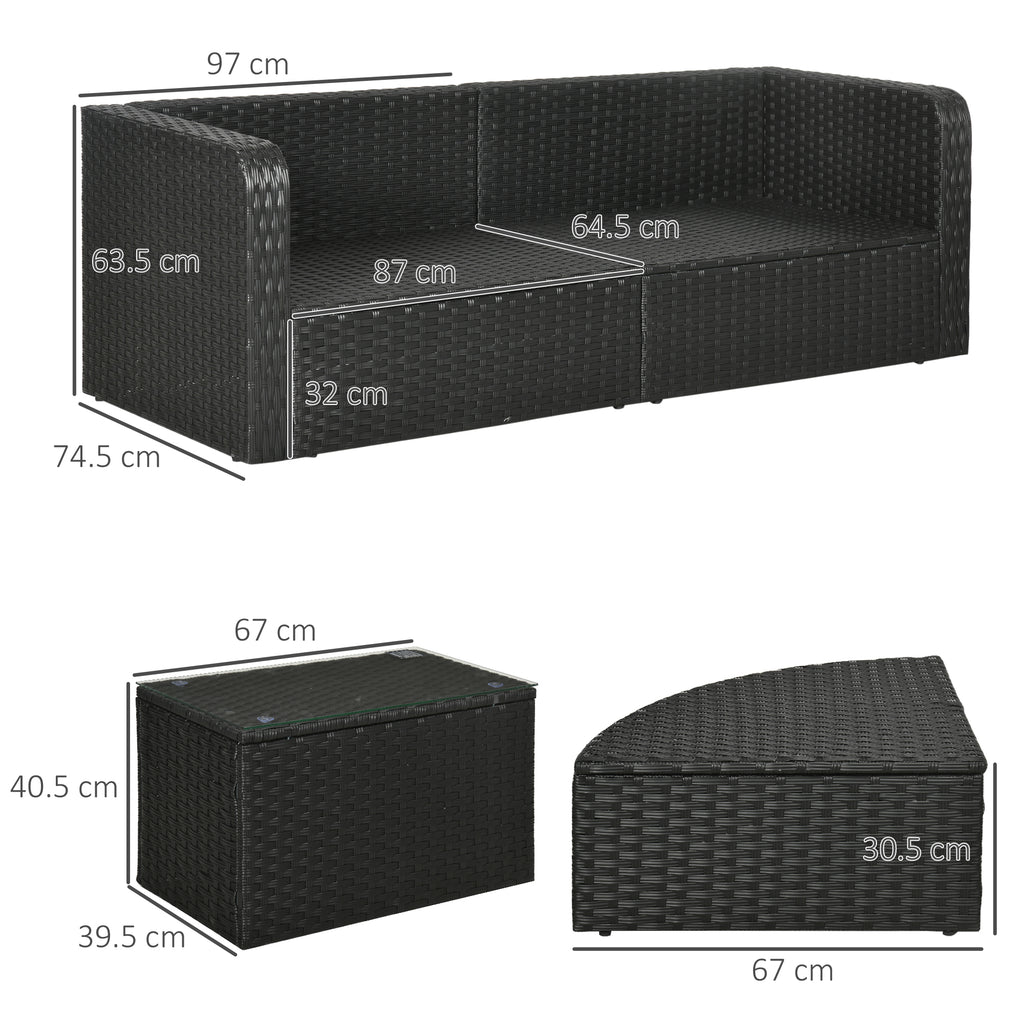 Set Salotto da Giardino Poltrona 2 Posti con Poggiapiedi e Tavolino Nero