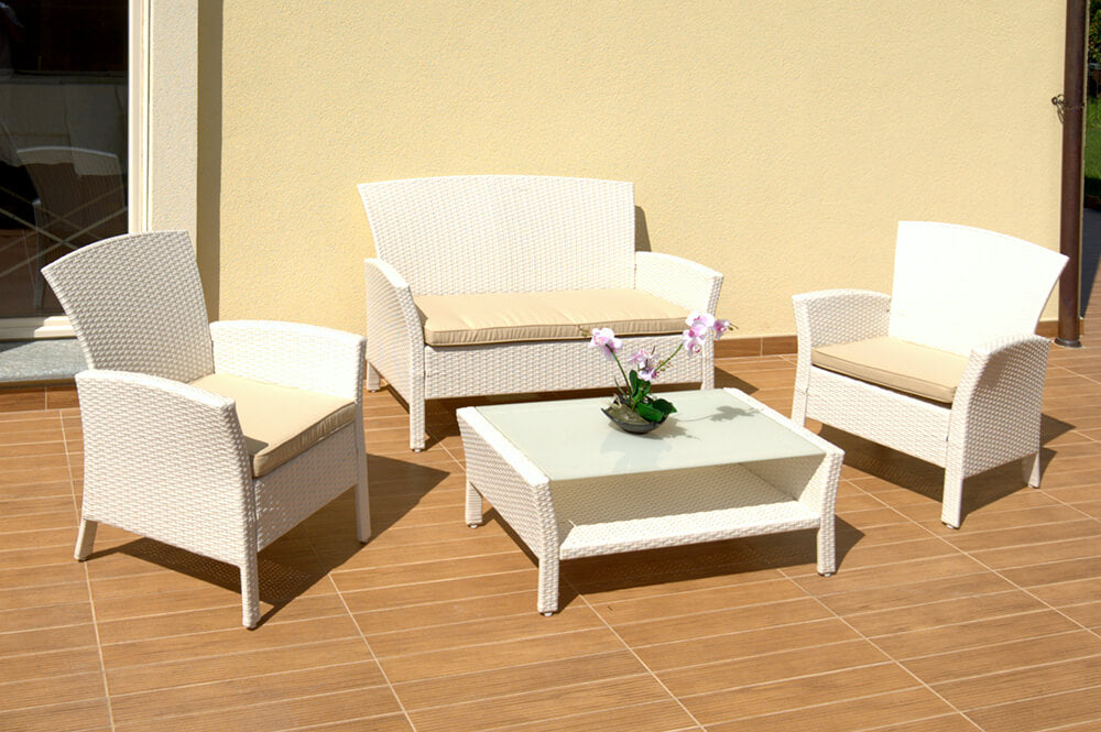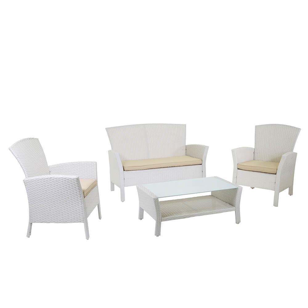 Salon Amalia En Polyrotin Blanc Avec Structure En Fer