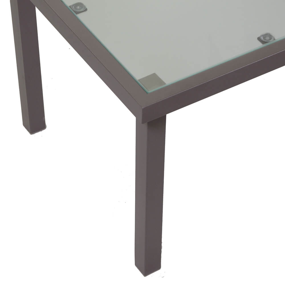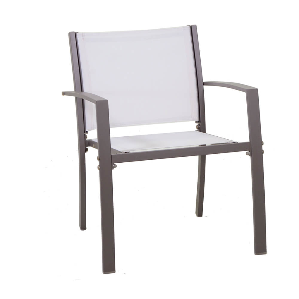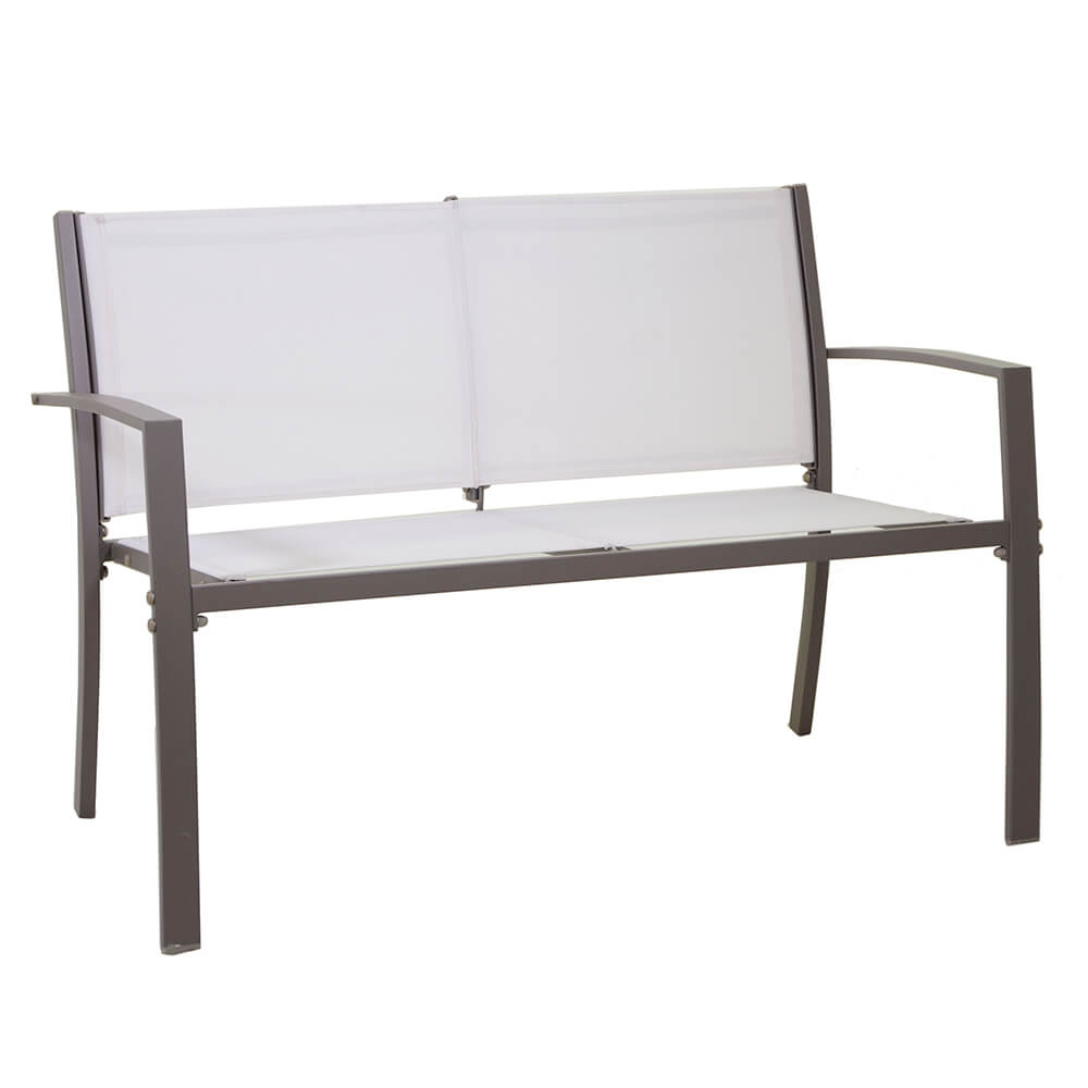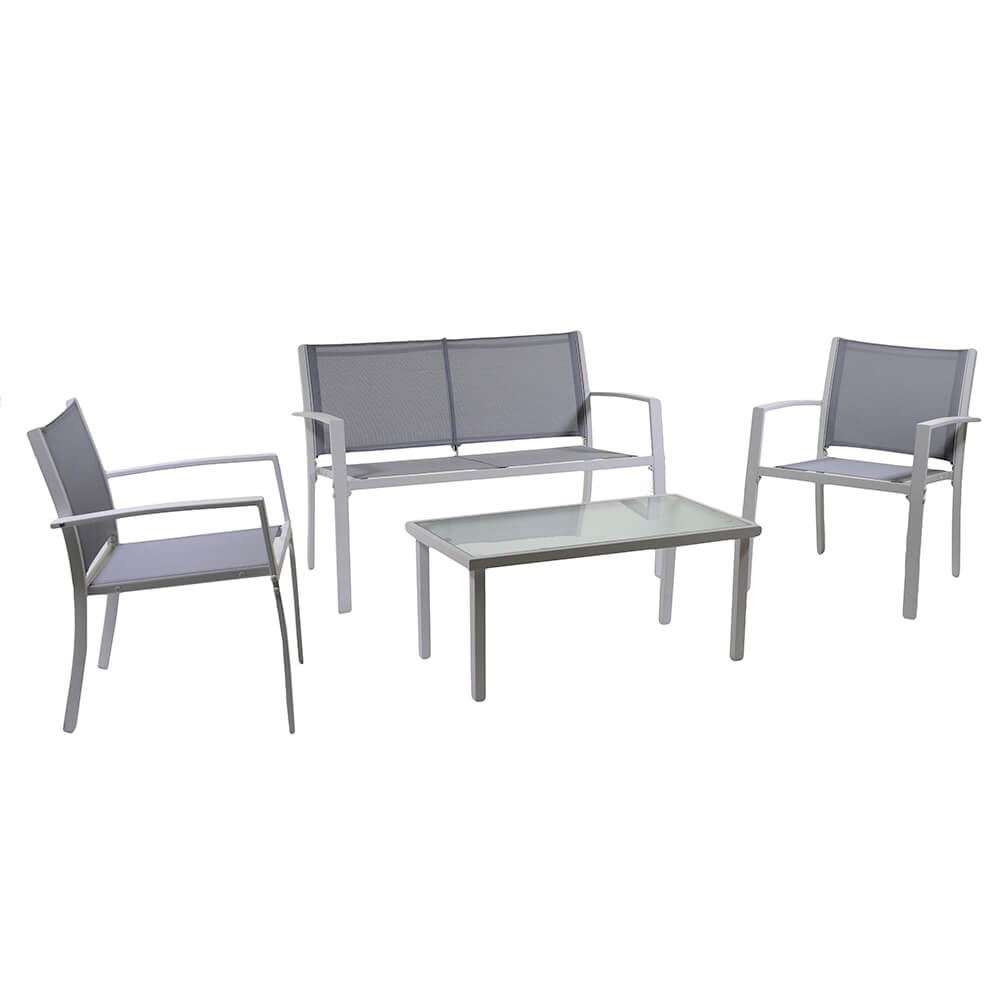 Salon de jardin table basse canapé 2 chaises en tissu et métal avec coussins gris Adami Columbus
