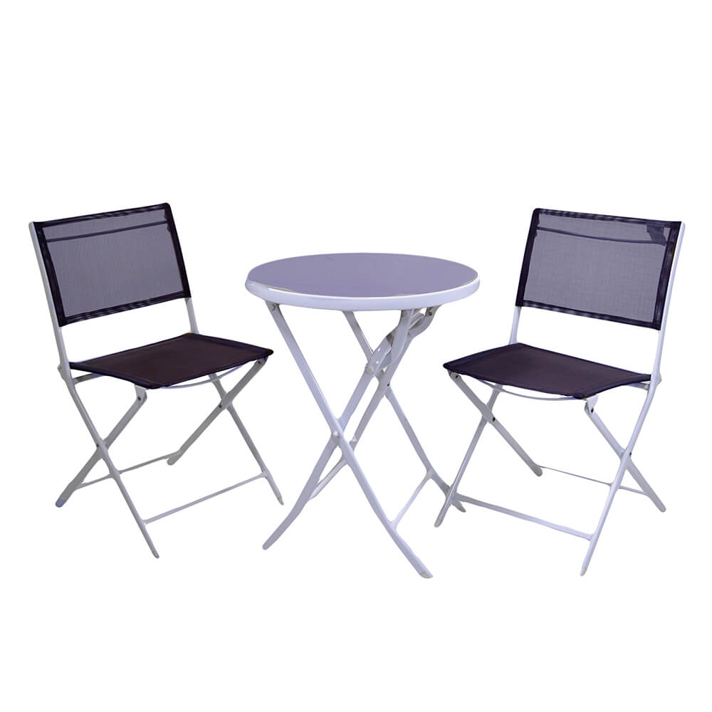 Salon de jardin avec table ronde et 2 chaises pliantes en métal et textilène ø66xH71cm