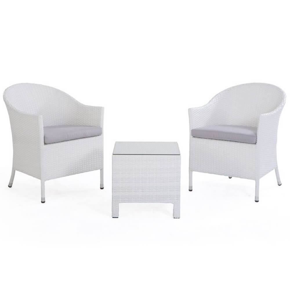 Salon De Jardin Table 2 Fauteuils En Polyrotin Blanc Bertozzi Letizia