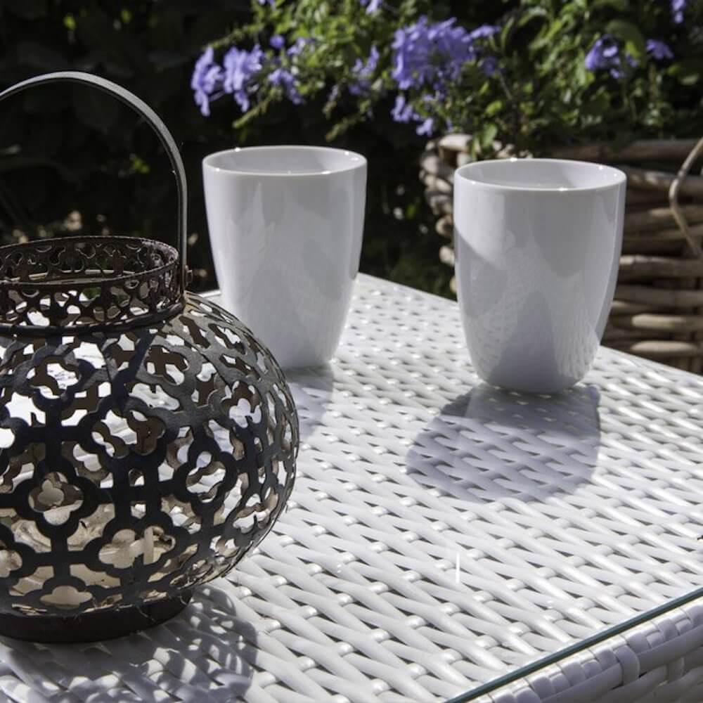Salon de jardin table 2 fauteuils en polyrotin blanc Bertozzi Letizia