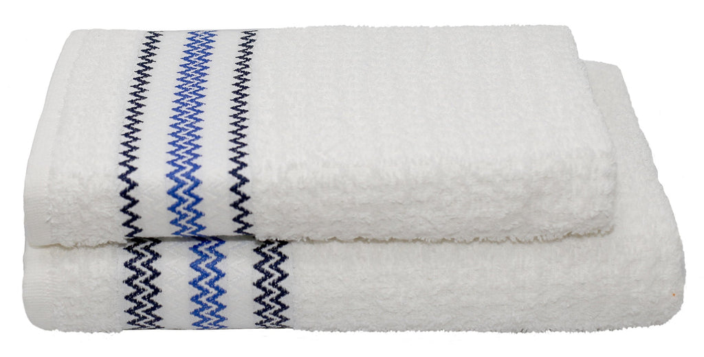 Set Éponge Serviettes Invité + Kate ZigZag Bleu Foncé et Lingette Royal