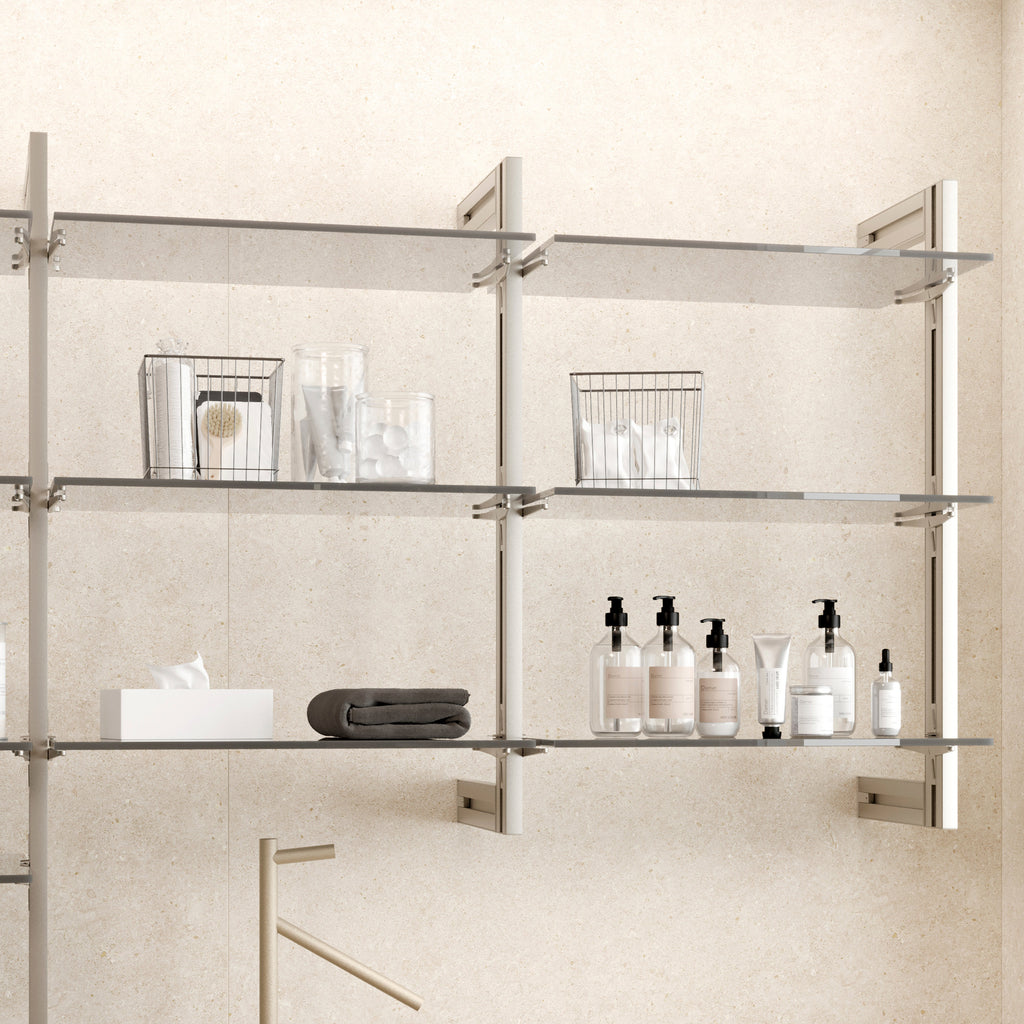 Profilés zéro et accessoires pour étagères modulaires. Les profilés sont en aluminium et les accessoires et supports d'assemblage sont en zamak. Grâce à sa simplicité et son design, le système Zero s'adapte rapidement à tout type d'environnement : maison, dressings, bureaux et magasins. Différents éléments peuvent être combinés pour créer votre composition idéale : étagères en bois ou en verre, modules ou petits conteneurs et barres de cintres. Le système Zero se caractérise par sa facilité de montage, puisqu'il n'est pas nécessaire d'utiliser d'outils pour le réglage. Ajustez et positionnez les étagères sans rien démonter et sans outils spéciaux. Grande capacité de charge car il peut supporter plus de 100 kg par étagère/module . De plus, grâce à son système de fixation innovant Zero, sa force de serrage augmente à mesure que le poids qu'il supporte augmente. La fixation du profilé peut être réalisée à l'aide de différentes formes de montage, fixation au mur, au sol ou au plafond ou une combinaison des deux.Les composants du système Zero comprennent tous les accessoires nécessaires au montage.