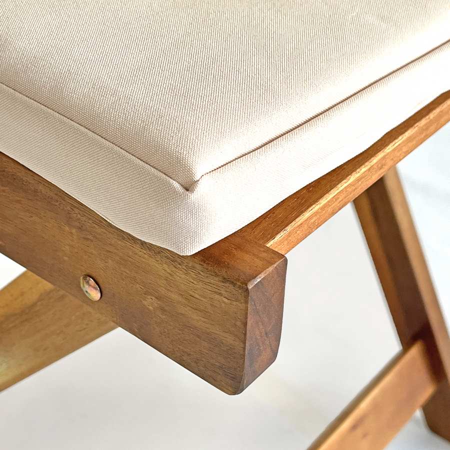 Il tavolino da esterno in legno va fissato da un lato alla parete, sulla quale è richiudibile, occupando solo 10 cm. Una volta aperto, il tavolino da giardino ha un'altezza standard, attorno ai 75 cm e dimensioni di 60x70 cm. Assieme al tavolino, il set da esterno Melzo comprende anche due sedie pieghevoli, sempre in legno, perfettamente adattate al tavolino, con i cuscini da esterno inclusi nel prezzo.