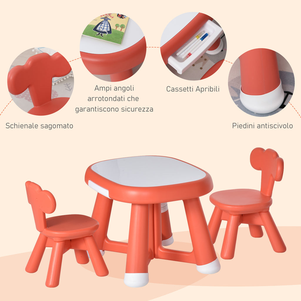 Set de Table avec 2 Chaises pour Enfants avec Plateau Tableau Blanc Rouge