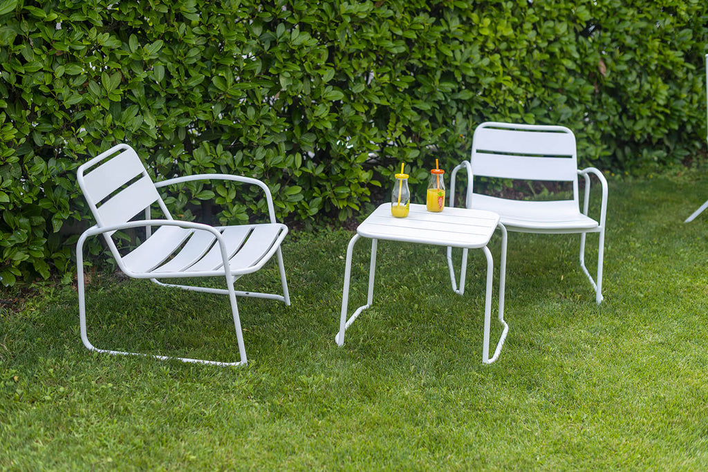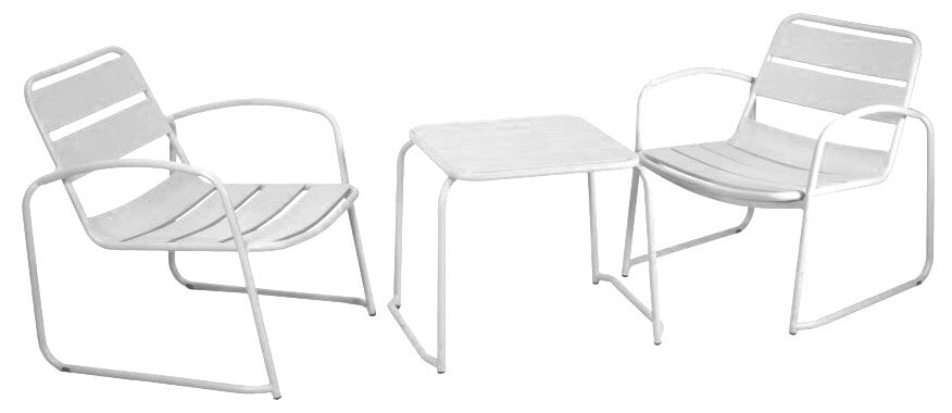 Ensemble Table Basse et 2 Fauteuils de Jardin en Métal Bistrot Blanc