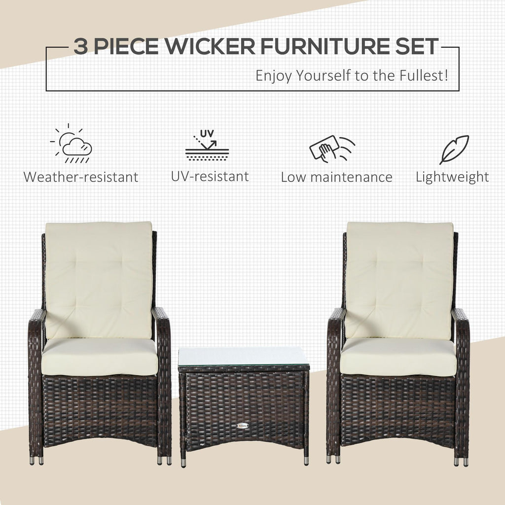 Ensemble Table Basse et 2 Fauteuils de Jardin en Rotin Polyéthylène Marron et Crème