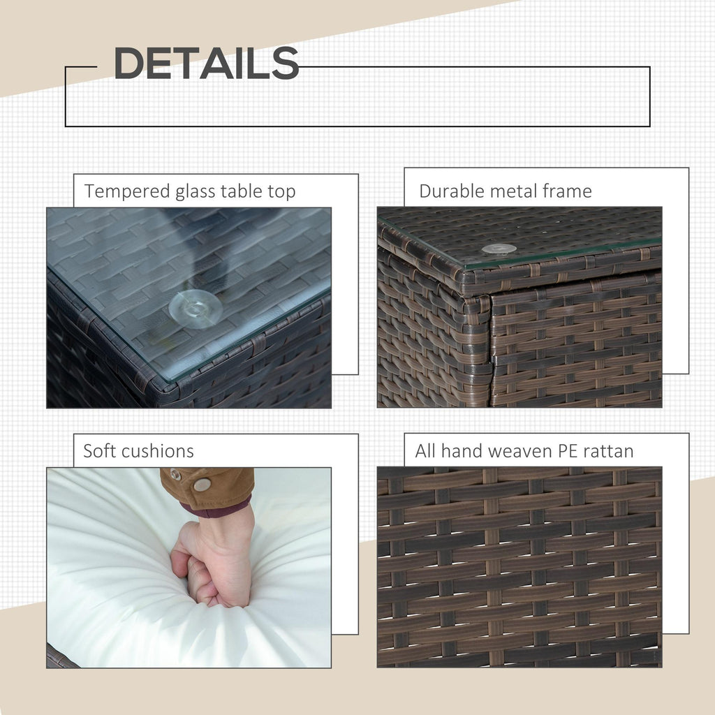 Le salon de jardin est la solution parfaite pour profiter de vos espaces extérieurs, du jardin au balcon. Composé d'une table basse et de chaises de jardin assorties, ce salon d'extérieur est doté d'une structure en métal robuste avec un revêtement en rotin PE anti-UV et résistant aux intempéries. Les coussins amovibles et lavables ont un rembourrage doux qui assure une assise confortable. Il est temps de profiter au maximum de vos espaces extérieurs avec cet ensemble !