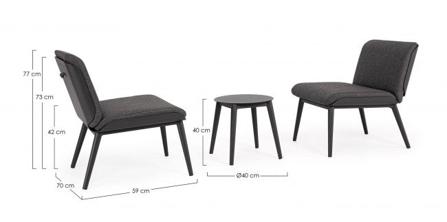 Ensemble Table Basse et 2 Chaises de Jardin avec Coussins Isabela Anthracite
