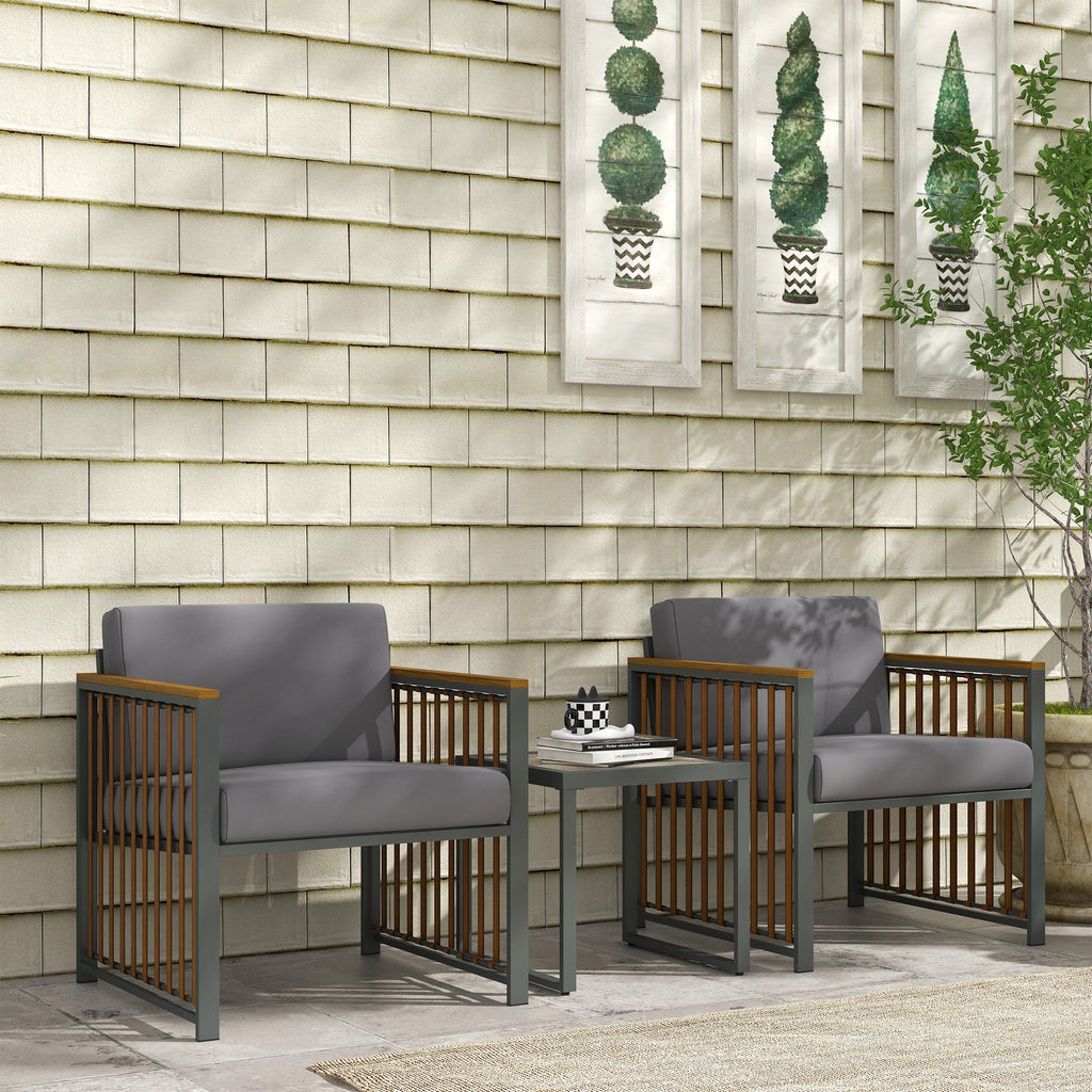 Set Tavolino e 2 Sedie da Giardino in Acciaio e Rattan Grigio