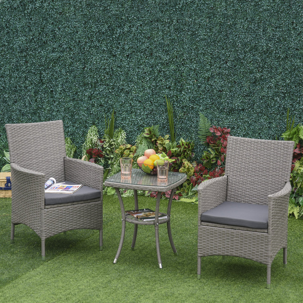 Ensemble Table Basse et 2 Chaises de Jardin en Rotin Gris