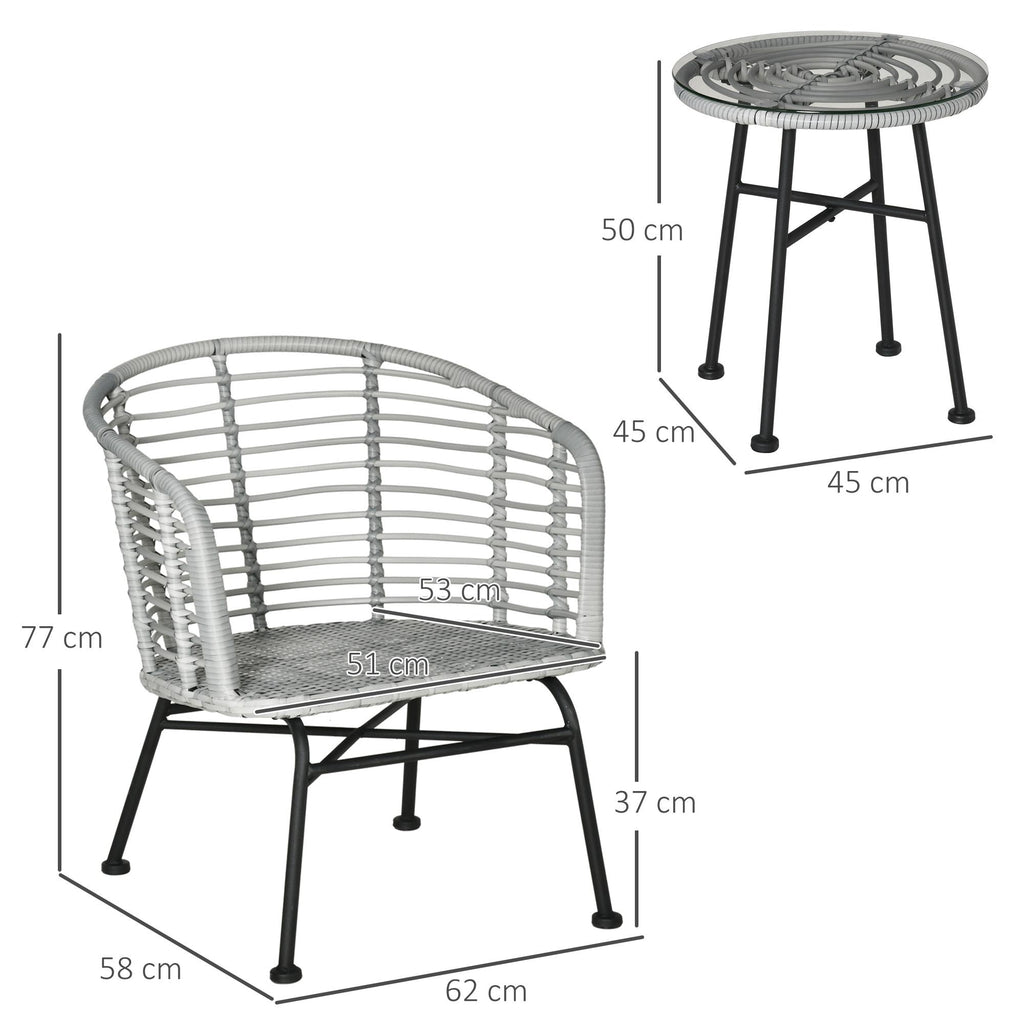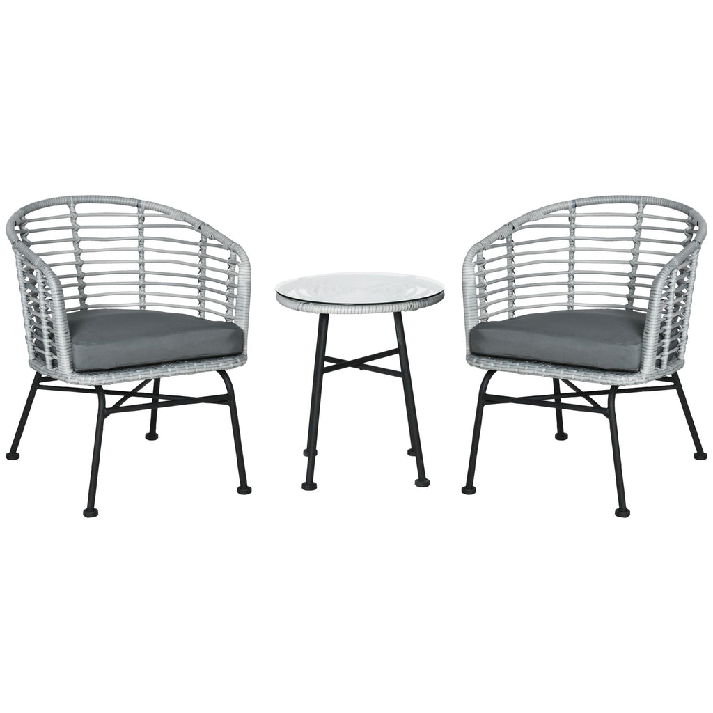 Ensemble Table Basse et 2 Chaises de Jardin en Rotin Synthétique Gris