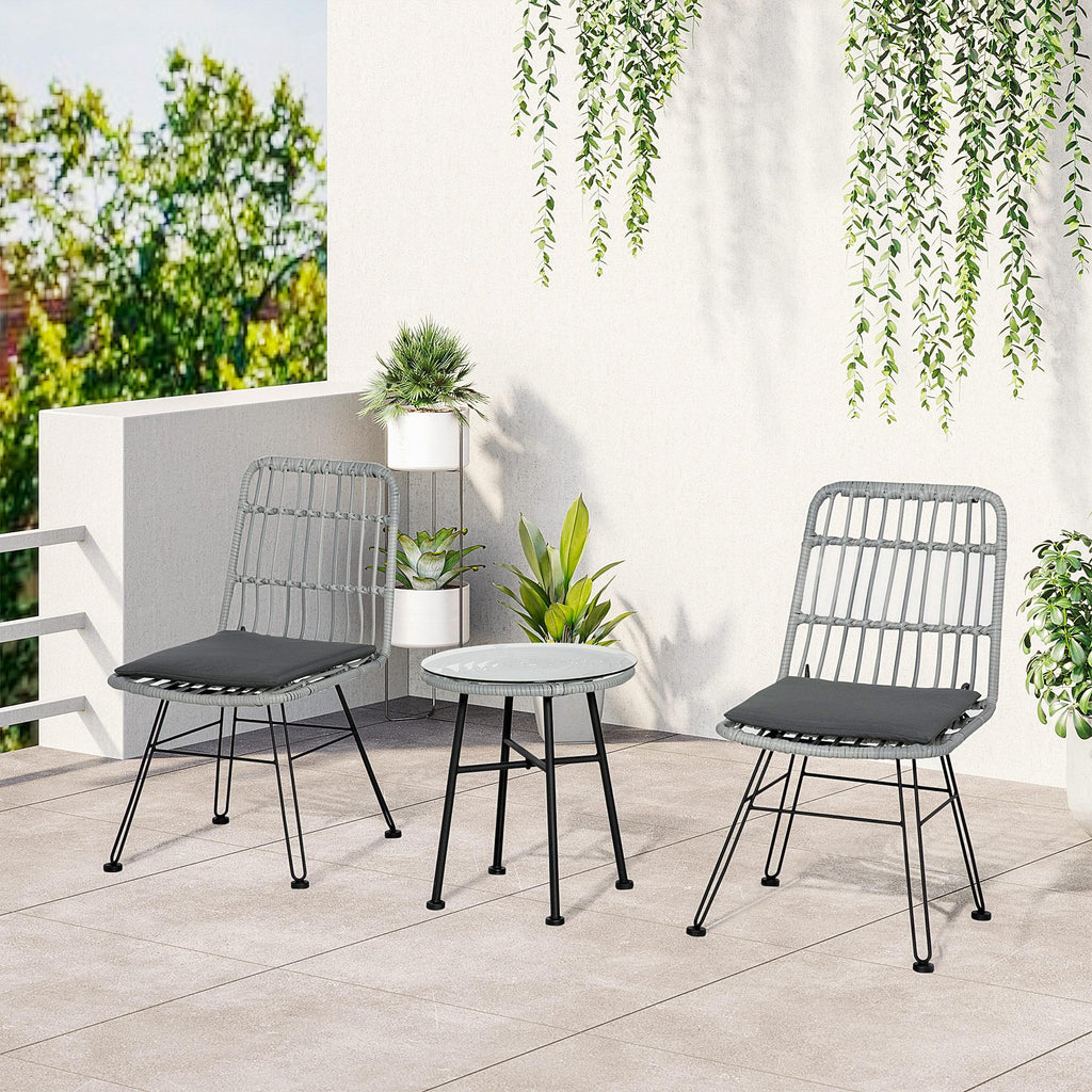Ensemble Table Basse et 2 Chaises en Rotin Polyéthylène Gris
