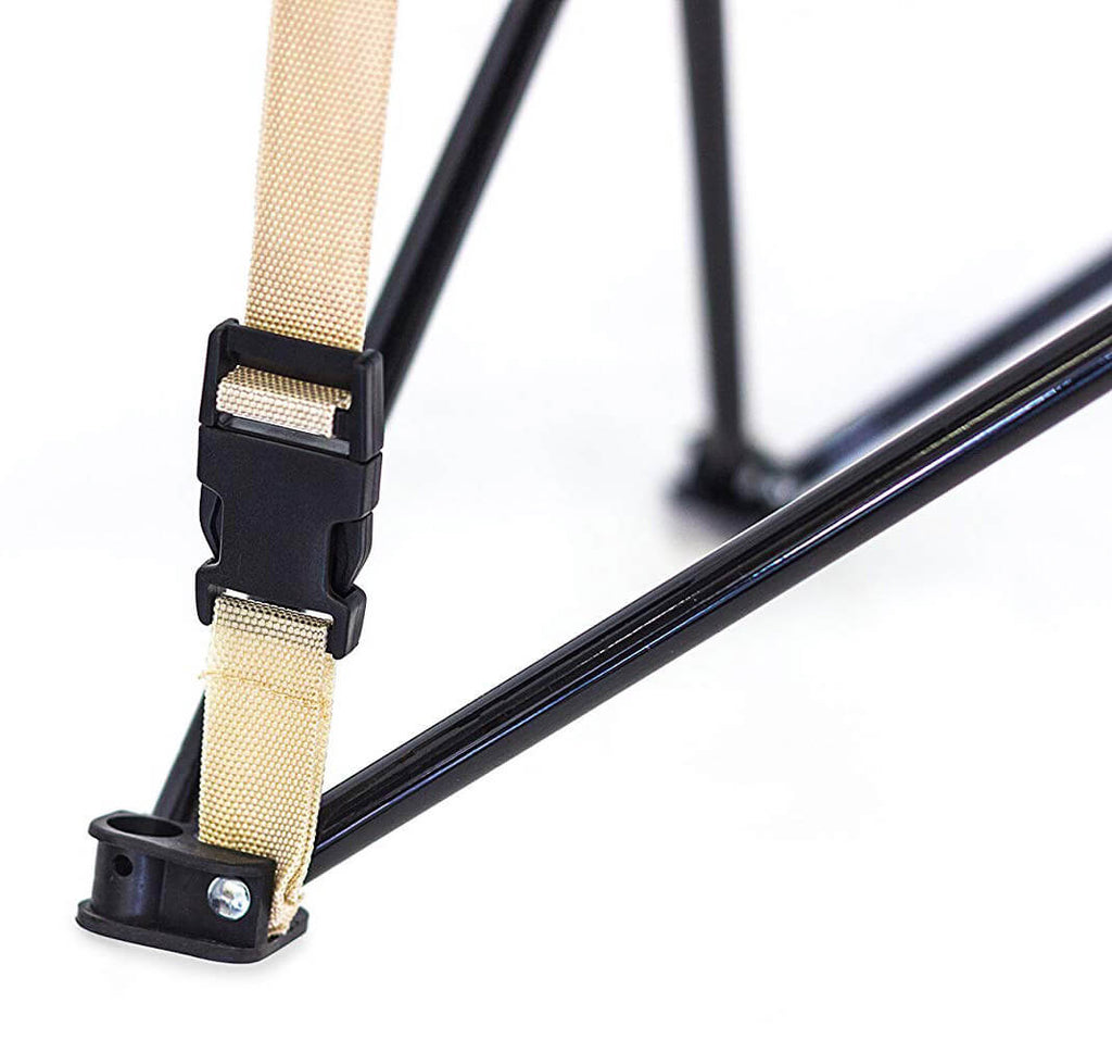 Les sangles élastiques attachées aux pieds alternés de la table augmentent la tension de la surface d'appui.