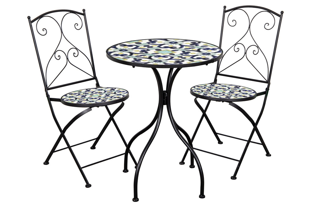Ensemble de table basse et 2 chaises de jardin pliantes avec mosaïque
