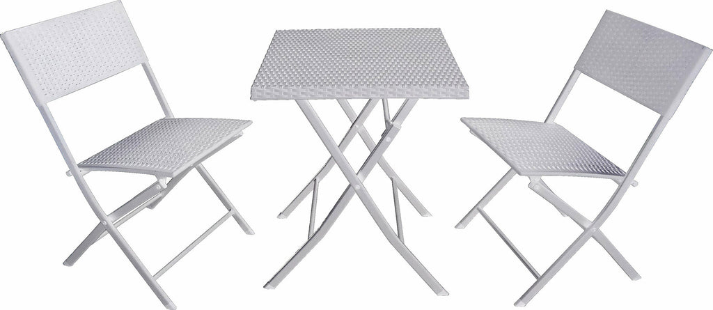 Ensemble de table basse et 2 chaises de jardin pliantes en acier et rotin blanc Becker
