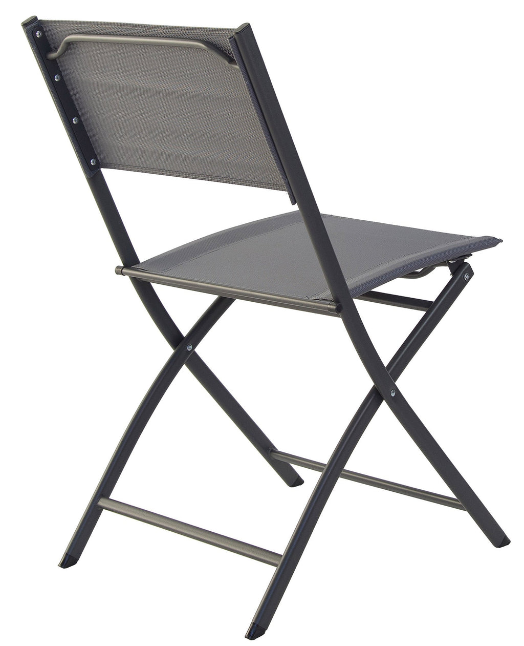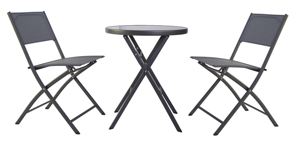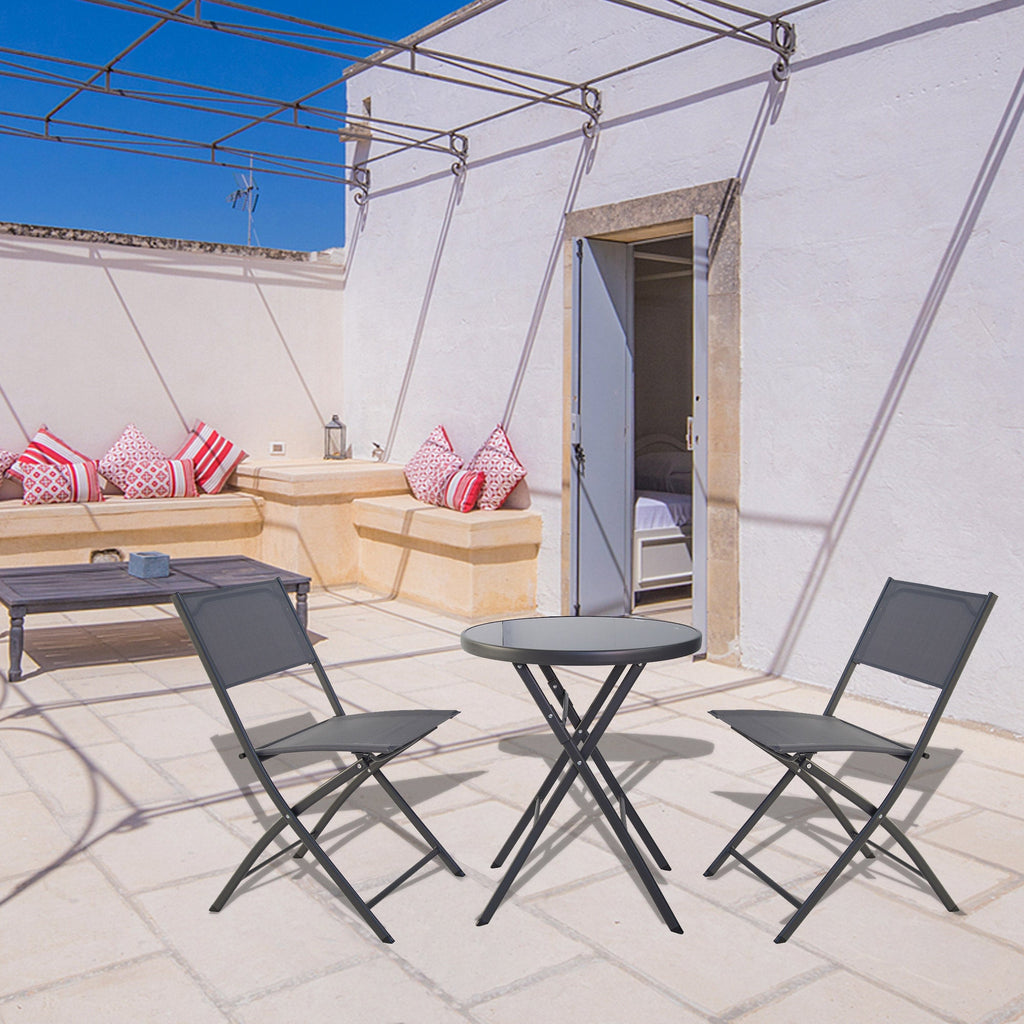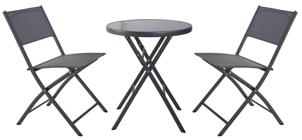 Ensemble de table basse et 2 chaises de jardin pliantes en acier et textilène gris foncé