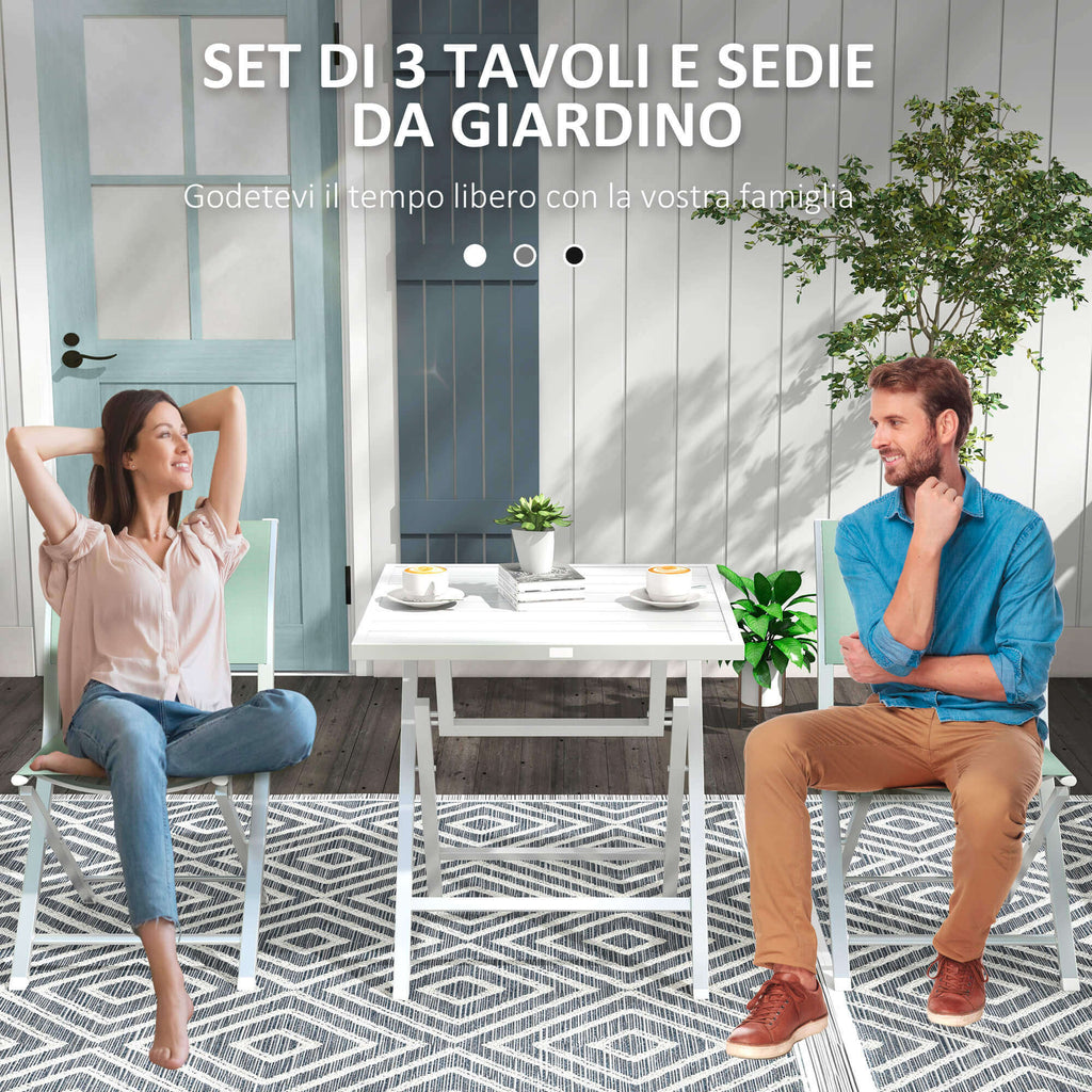 Set Tavolino e 2 Sedie Pieghevoli da Giardino in Alluminio Verde