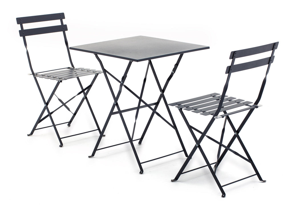 Ensemble Table et 2 Chaises de Jardin Pliantes en Fer Bistrot Anthracite