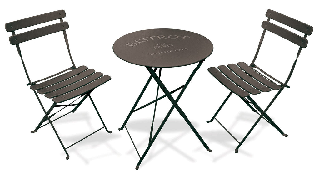 Ensemble Table Basse et 2 Chaises de Jardin Pliantes en Métal Noir Soriani Bistrot