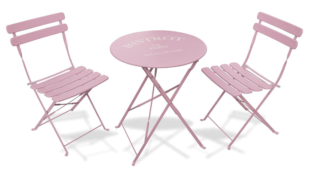 Ensemble Table Basse et 2 Chaises de Jardin Pliantes en Métal Soriani Bistrot Rose