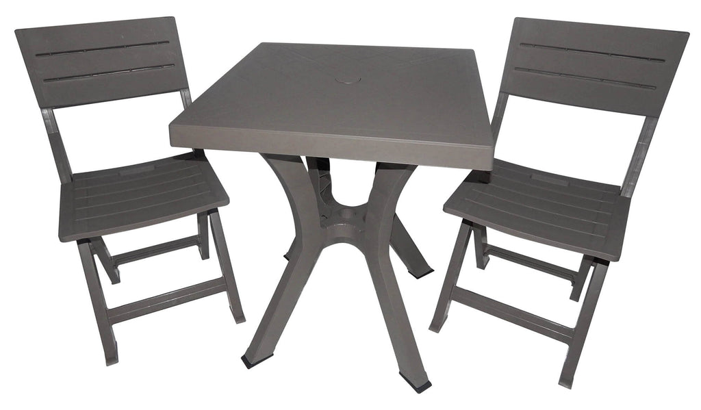 Ensemble table et 2 chaises de jardin pliantes en résine Bauer Duetto Tortora