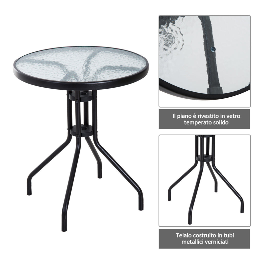 Cet ensemble de meubles se compose d'une table basse avec un plateau en verre trempé et de 2 chaises pliantes.