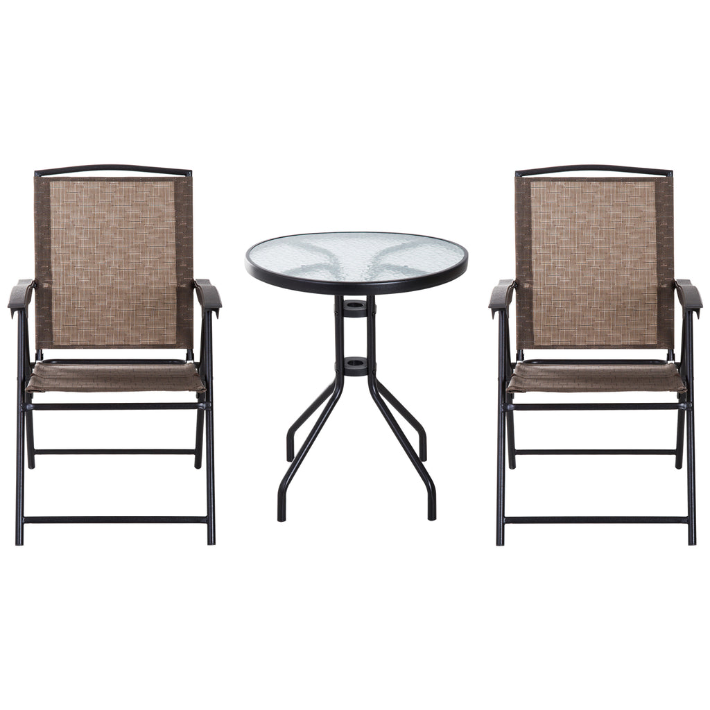 Ensemble de Table Basse et 2 Chaises de Jardin Pliantes en Verre Marron