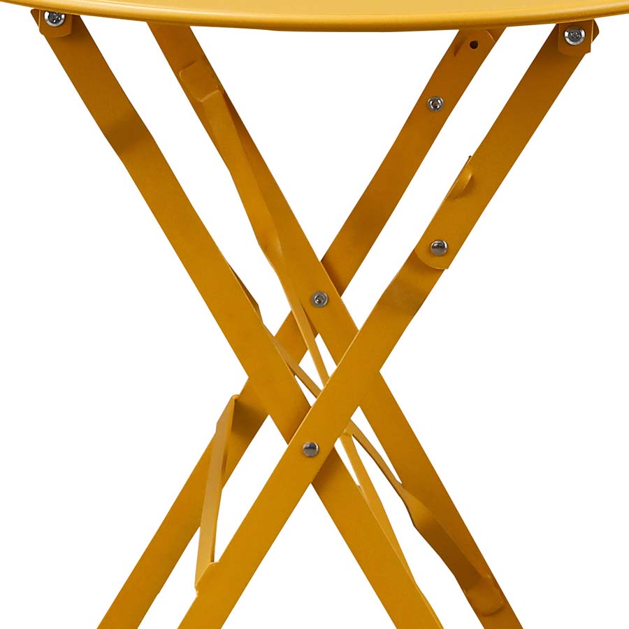 Regala luce e vitalità al tuo arredo giardino con il set da balcone Teresa nella vivace tonalità mostarda. Il set Teresa è composto da tavolino pieghevole rotondo e due sedie pieghevoli dalle linee delicate e ricercate.