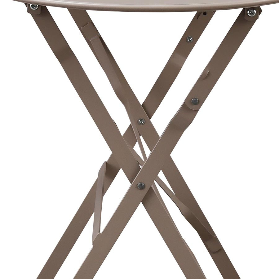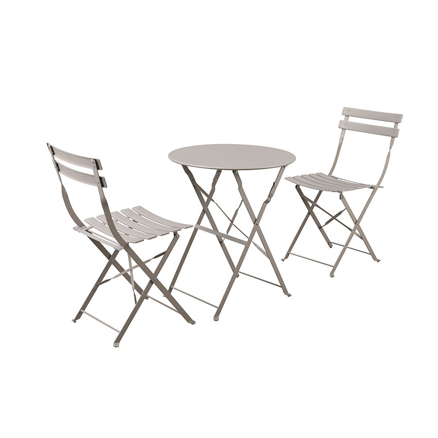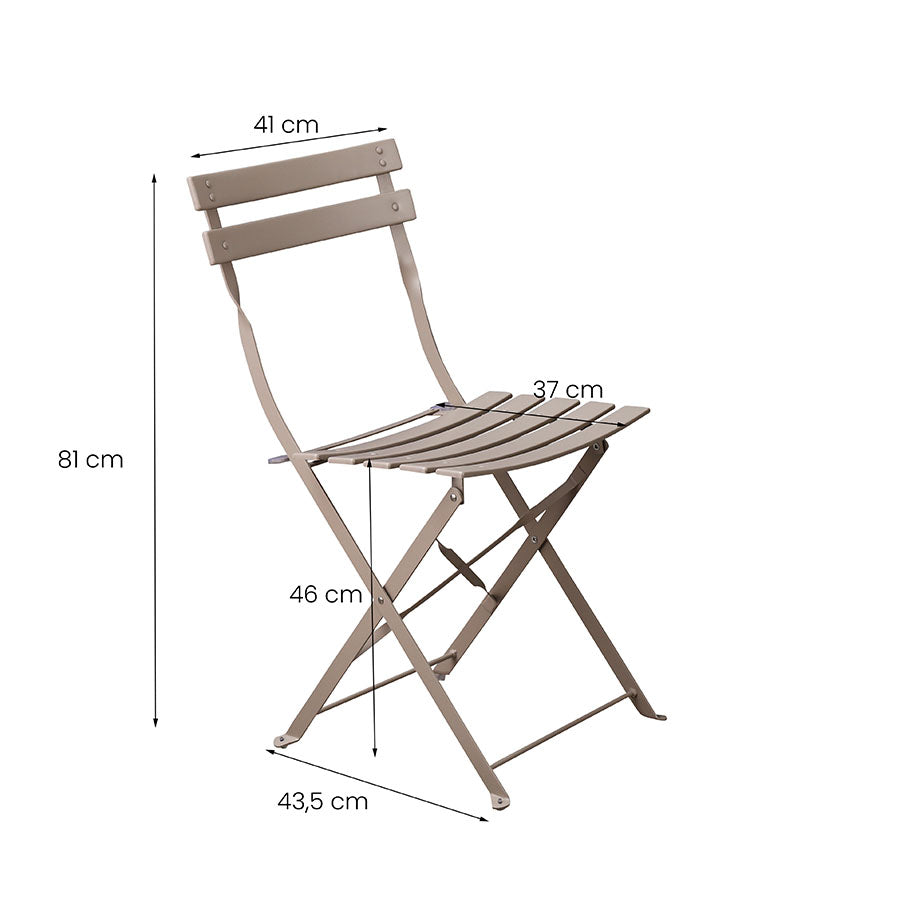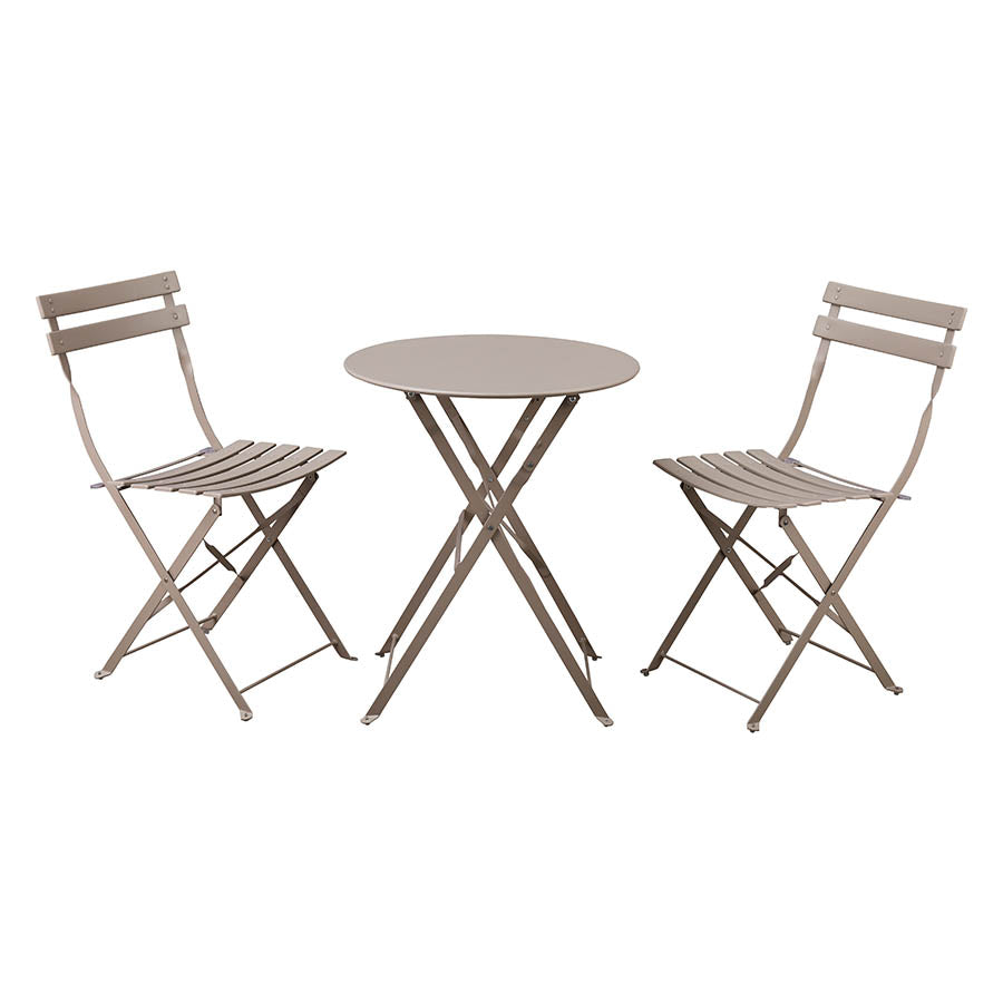 Regalati l'eleganza del set da balcone Teresa nella raffinata tonalità talpa e trascorri al meglio i tuoi momenti all'aperto! Il set Teresa è composto da tavolino pieghevole con dimensioni diam. 60 x H. 71 e due sedie pieghevoli con dimensioni per singola sedia di 41 x 43,5 x H. 81 cm.