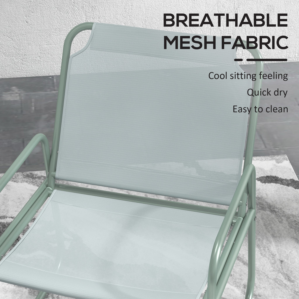 Set Tavolino Rotondo e 2 Sedie da Giardino in Acciaio e Tessuto a Rete Traspirante Verde
