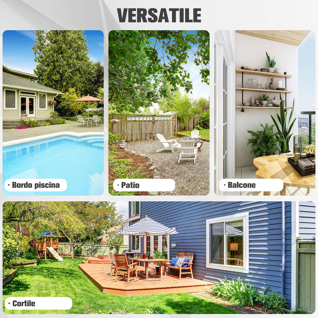 Changer le look de votre terrasse, c'est simple ! Tout ce dont vous avez besoin est une table d'extérieur avec 2 chaises pliantes assorties pour donner à votre environnement un look plus complet et élégant , mais sans sacrifier le confort. Cet ensemble est particulièrement conçu pour ceux qui disposent de peu d'espace : le meuble est léger et pliable, parfait pour être fermé ou déplacé si nécessaire. Les matériaux utilisés sont imperméables et antirouille, idéaux pour une utilisation en extérieur. Créez un environnement sophistiqué au meilleur rapport qualité/prix avec !