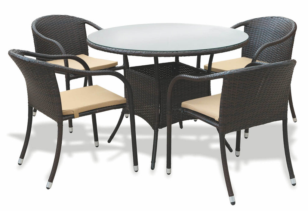 Ensemble Table + 4 Chaises de Jardin en Polyrotin Soriani Milo Marron