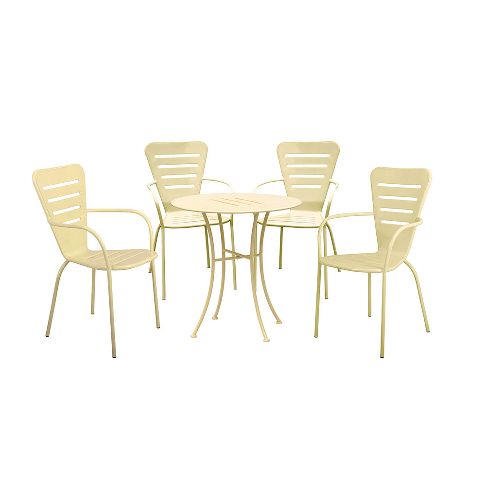 Ensemble Table + 4 Chaises en Acier Peint Crème Geneva Lounge