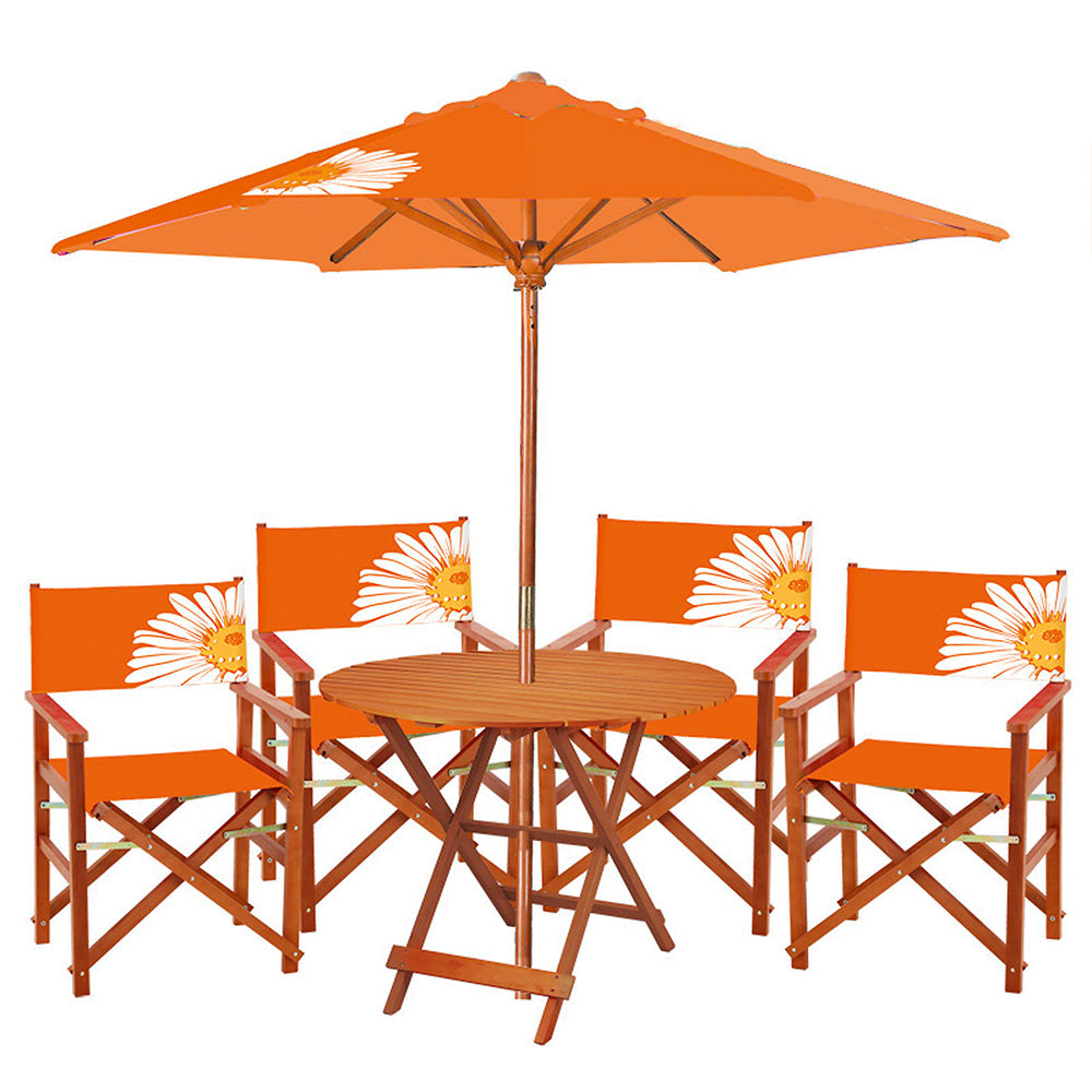 Ensemble Table + 4 Chaises Pliantes + Parasol Bois Margherita