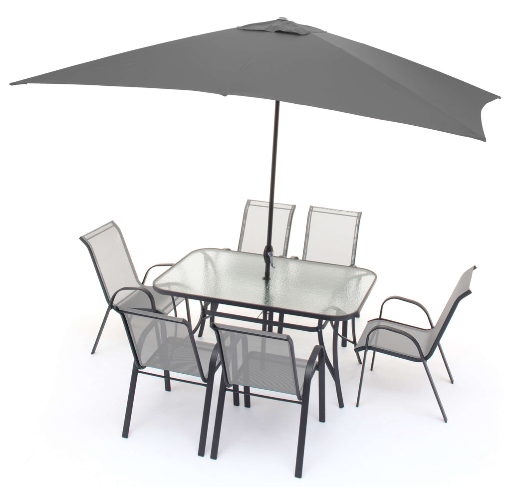 Taddei Livorno Ensemble table de jardin en fer anthracite, 6 chaises et parasol