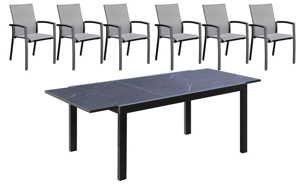 Ensemble de table extensible et 6 chaises de jardin en aluminium anthracite et textilène
