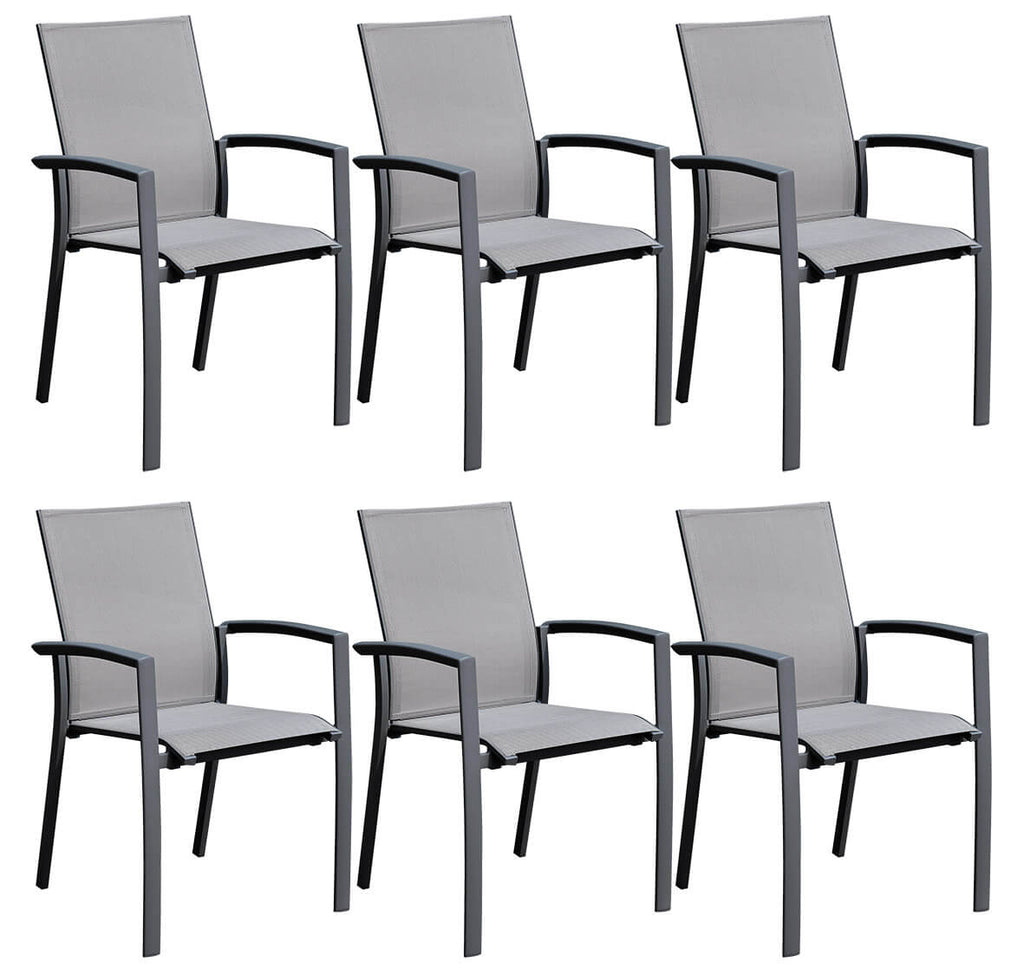 Ensemble table extensible et 6 chaises de jardin en aluminium et textilène anthracite