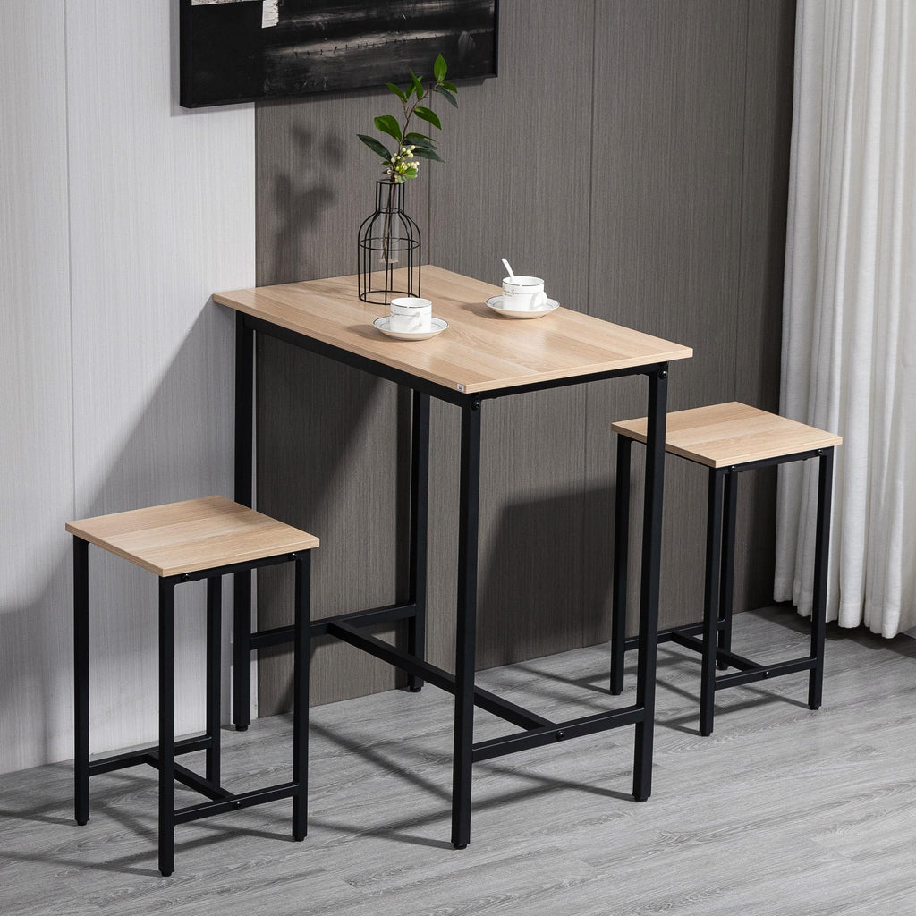 Set de Table avec 2 Tabourets en Bois et Acier Noir