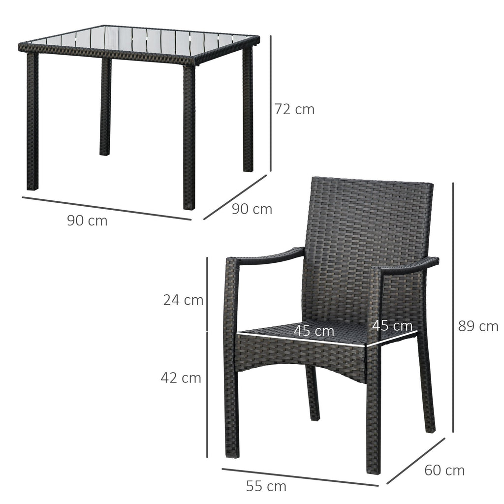 - DIMENSIONS : Dimensions de la table : 90 L x 90 P x 72 Acm. Dimensions de la chaise : 55L x 60H x 89Acm. Taille du siège : 45L x 45Pcm. Hauteur d'assise : 42 cm.