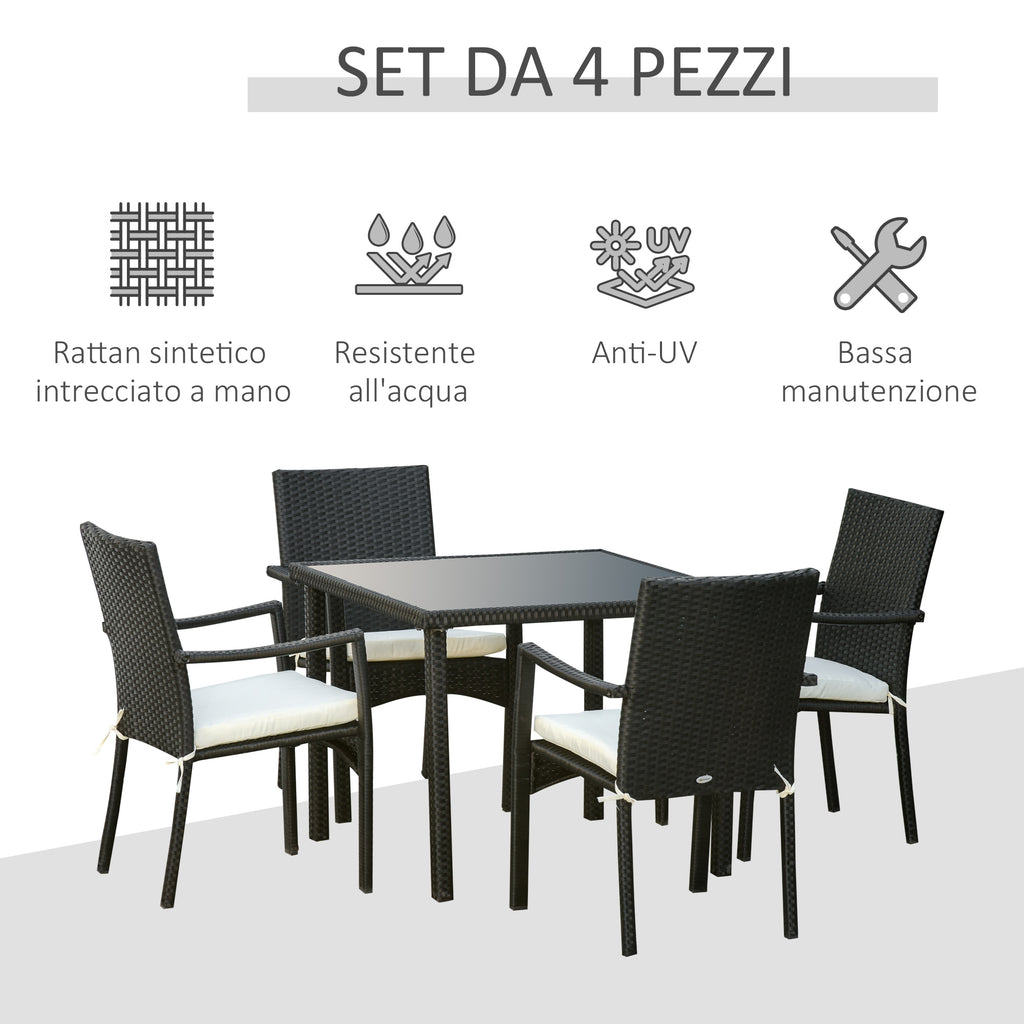 Ensemble table et 4 chaises de jardin en rotin noir