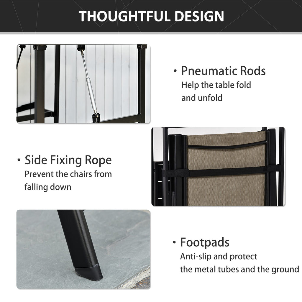 - MATÉRIAUX DE QUALITÉ : Le cadre en métal et la conception à lattes de la table de jardin la rendent durable et facile à nettoyer. Le siège en textilène des chaises est respirant et vous aide à rester au frais par temps chaud. Les pieds sous la table pliante et les chaises protègent le sol des rayures et les tuyaux métalliques de l'usure.