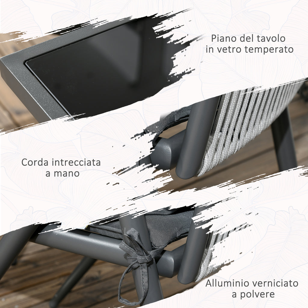 Set Tavolo con Piano in Vetro e 4 Sedie da Giardino in Alluminio e Poliestere Grigio Scuro
