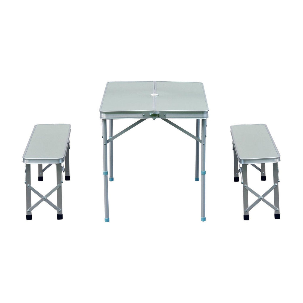 Ensemble de table de pique-nique de camping 2 bancs pliants en aluminium argenté